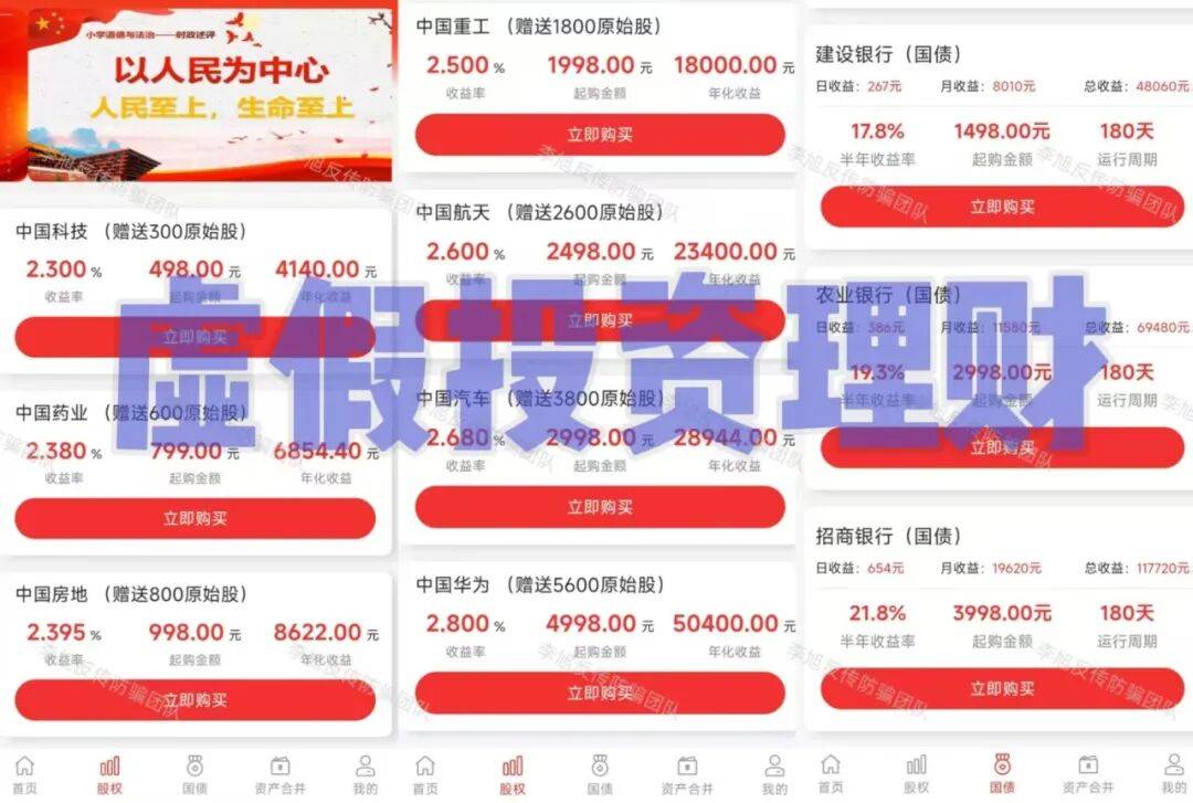 不法分子打着“云数贸”旗号,冒充“国家项目”,虚构推广“中国科技”“中国药业”“中国银行”“工商银行”等原始股、国债类理财产品。