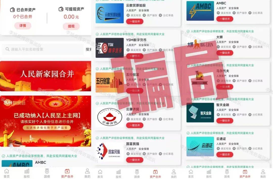 同时宣称可将各类项目资产合并,忽悠参与者缴纳高额费用。但这些项目都是一些已经崩盘跑路或被官方定性的不法项目。