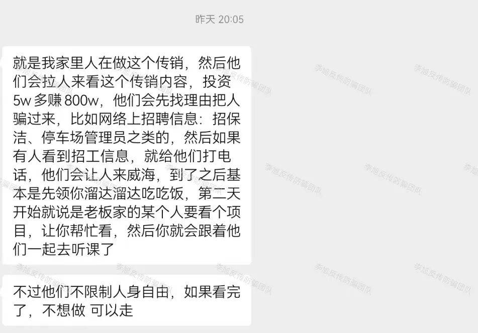 网友21年被朋友带到荣成,以“帮忙考察项目”为由,在五天内前往多个出租屋,由20多名讲师轮番为其讲解“行业制度”。