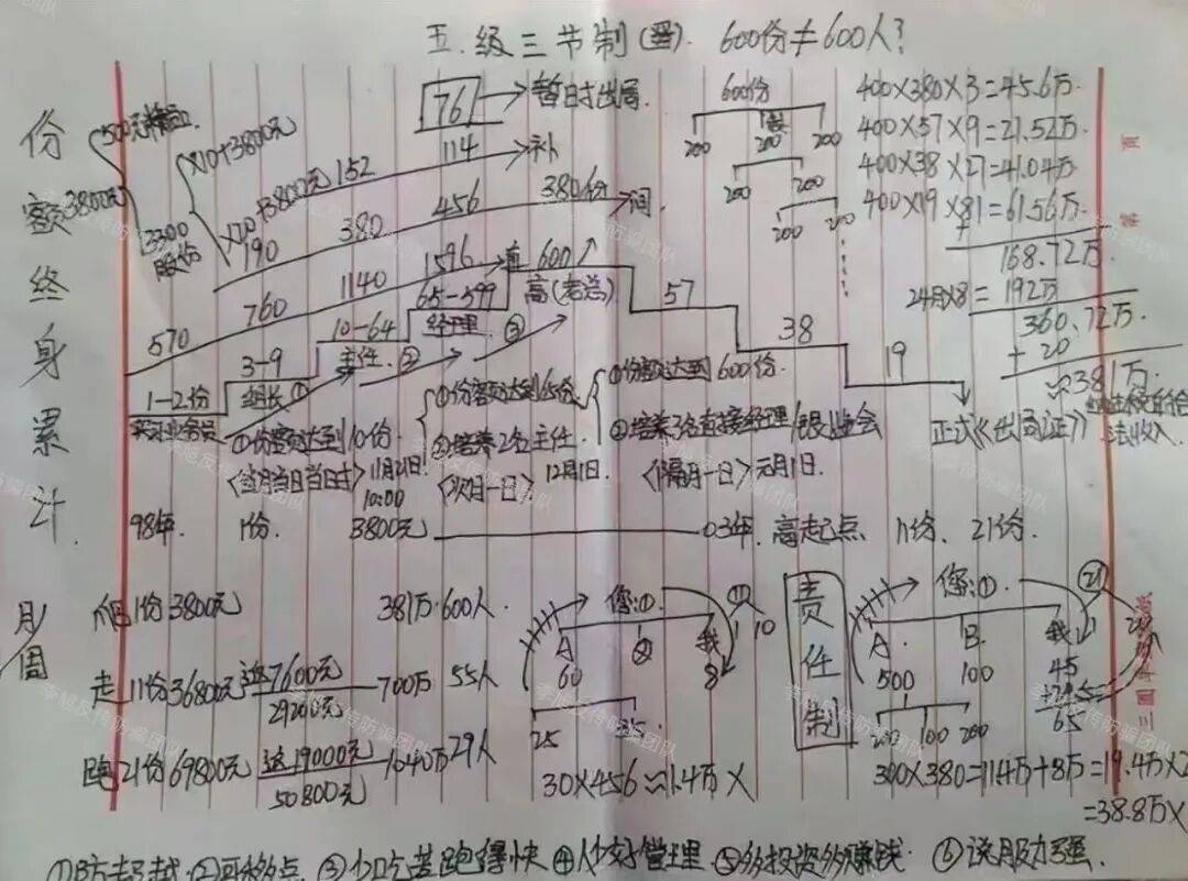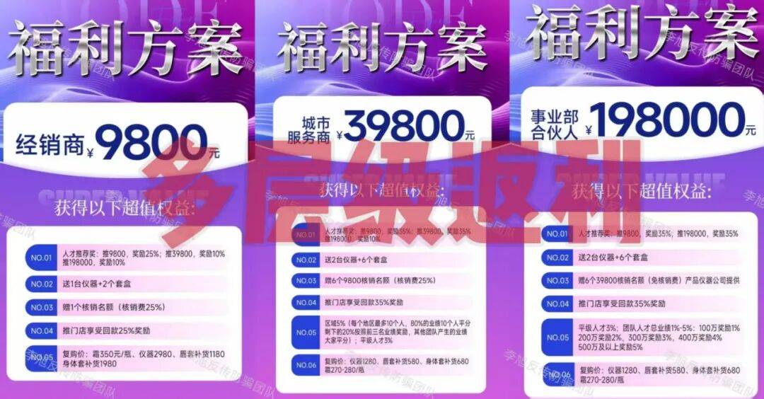 同时设置“人才推荐奖”“推门店回款奖励”“层级业绩奖励”等等,层级越高,拉人头的奖励比例越优,形成典型的“层级式返利”模式。