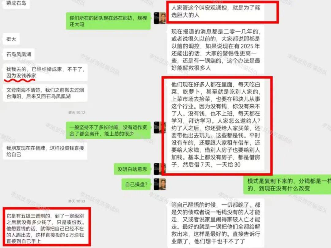 总之就是一个“拖”字。一旦有人提出异议,便会被踢出群聊。甚至利用参与者法律知识盲区,向其散播报帽子叔叔资金无法追回的错误概念,试图以此规避打击。