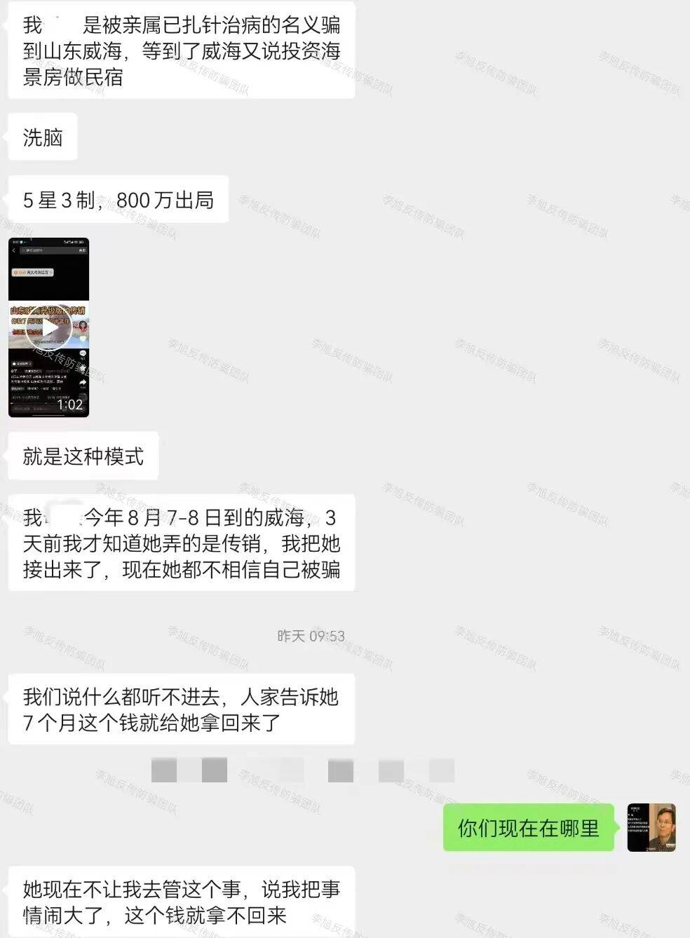 网友家人被朋友以治病为由骗至威海,随后对方声称带母亲投资海景房做民宿生意。自此开启听课“”流程。